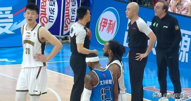 第四节剩下6分21秒,姜宇星和陈盈骏对位回合爆发争议,杨鸣不满吹罚连续对着99号裁判输出领到技术犯规。