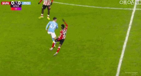 第45+4分钟,阿丁格拉背后放倒福登,被裁判黄牌警告